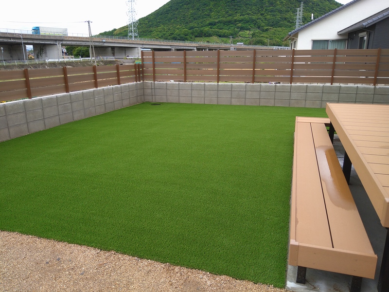 香川県坂出市で人工芝を施工しました。(施工した人工芝はジャパンターフ30㎜景観用)
