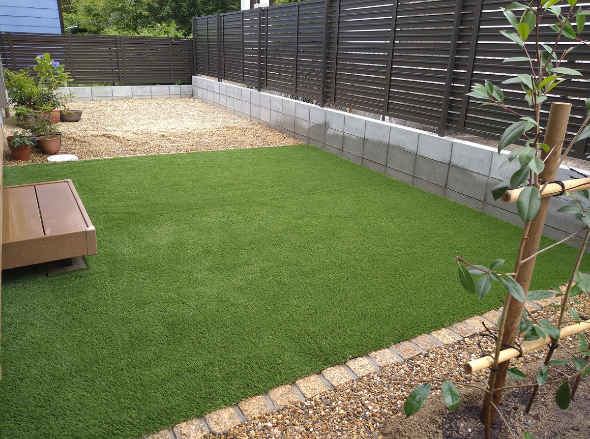 人工芝を奈良県生駒市で施工しました。 (15㎡)