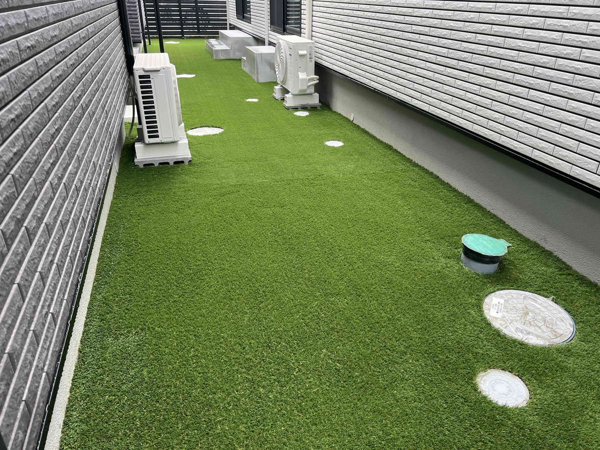 京都府城陽市で人工芝を施工しました。(施工した人工芝はジャパンターフ30㎜景観用)